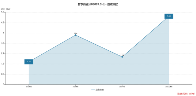 财报显示,截至2025年9月30日,甘李药业应收账款余额高达5.30亿元,较2024年末的2.14亿元激增3.16亿元,增幅达147.86%。这一增速远超公司同期35.73%的营业收入增速,应收账款占总资产的比例也从1.77%骤升至4.36%。